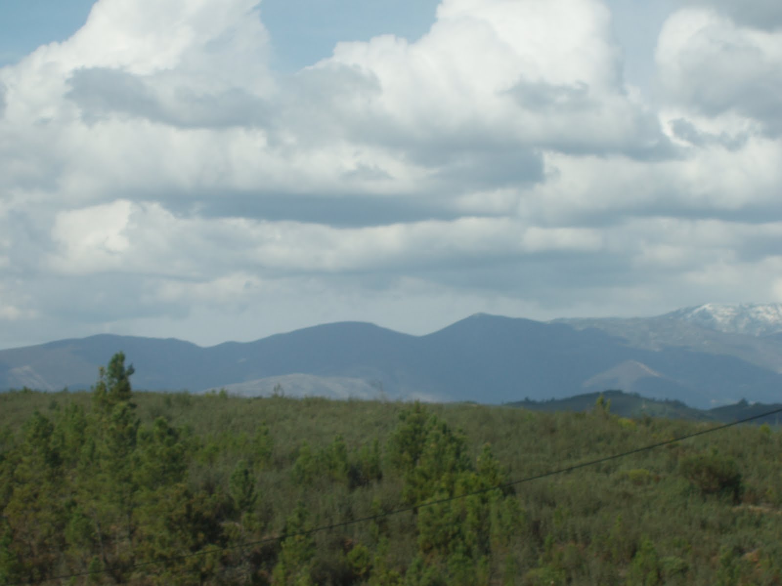 Pelas serras a caminho do Fundão na zona das Minas da Panasqueira, ao longe a neve na serra de Estrela. Foto tirada do carro, não atenderam os meus pedidos para parar...