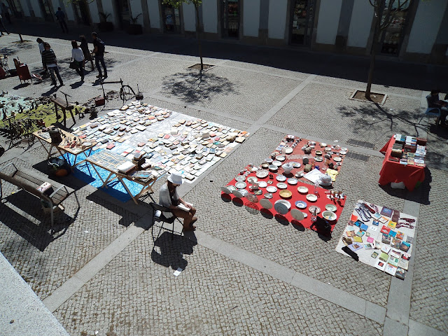 Dia 1 de abril, podia ser uma mentira, mas foi verdade. Feira bimensal de artesanato e velharias. Recordei nesta terra aqui parar pela primeira vez quando era ainda adolescente no verão de 75 - ano da efeméride da liberdade. Lugar de eleição para se comer e verter águas a caminho dos Algarves. Tanta afluência de gente que aqui parava - enchia cafés e restaurantes, ainda dava tempo para apreciar o bom artesanato em cobre, latão e cortiça. Falo de
