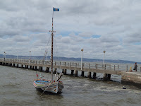 Contemplei o Tejo que beija esta terra. Lindo o quadro em pano de fundo - Lisboa - não menos bonito o varino a baloiçar nas ondinhas da brisa que se fazia sentir. Um dia, há anos, daqui deste cais parti numa fragata recuperada pela Câmara, passei pela ponte Vasco da Gama ainda a ser construída, vinham no rio plataformas grandes - nada menos que o piso - grandes guindastes as levantavam no ar e os punham no acrescento da ponte, até ficar pronta, fazia-se também a cobertura do Pavilhão Atlântico e de outros na Expo...
