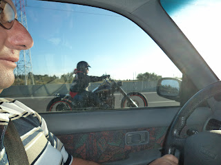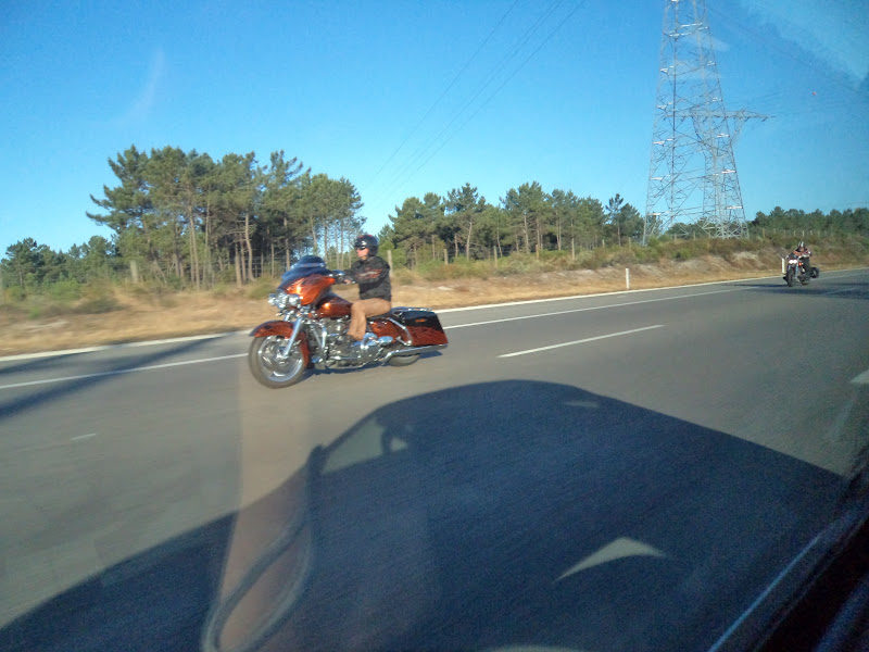 do sul no ramal da Amora vi refletidas no espelho as luzes das motas Harley em alinhamento a 120, ordeiros - foi preciso o meu marido infringir o limite nos 140 ao Micra carregado para captar as fotos...