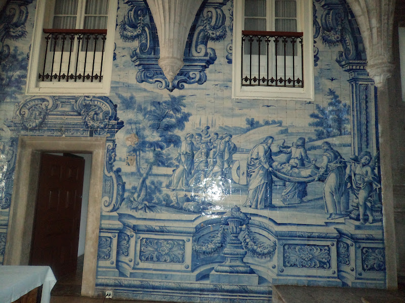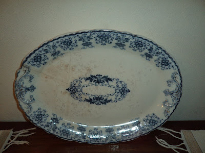 Terra cuja fundação atribuída a 850 A. C. foi tornada vila com D. JoãoII, aqui nasceu o o rei D. Manuel I em maio de 1469 - o meu mês - e, mais tarde este lhe viria a conceder o foral em 1515. Foi a Cíntia que me avivou o nome - coruchéus - quando depois do almoço a voltei a encontrar e lhe contei a minha odisseia, trazia ela uma grande travessa que tinha sido da sua avó oferta do avô que trabalhou na Companhia Nacional de Navegação. Percebi logo que era inglesa sem ver o tardoz, marca azul esborratada e, ainda uma marca gravada na pasta. A minha amiga Leonor Ceia há tempos ofereceu-me uma série de objetos pertença uns da sua querida avó, outros da sua querida mãe - destaco duas travessas grandes com a mesma bordadura igual à da Cíntia e, os mesmos dourados nas pegas - foi o Santiago que me alertou - um dos donos da fábrica de Sacavém - Gilbert(?) foi também dono de outras fábricas de loiça : Vista Alegre e da inglesa onde foi feita a travessa da Cíntia - sendo que as minhas julgo serem VA - têm o mesmo formato e acabamento só diferem na estampa. Agora o inimaginável. A Cíntia ofereceu-me a sua travessa herança da sua querida avó.