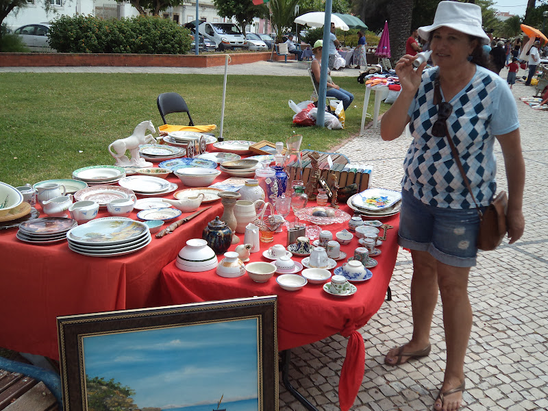 - Risada farta! Um bom piropo faz bem, alimento para o ego nesta idade madura a caminhar para a velhice tal como os objectos das bancas - velharias no meio de velharias - na despedida ainda me convidou para comer caracóis, rejeitei por não apreciar - não consigo!