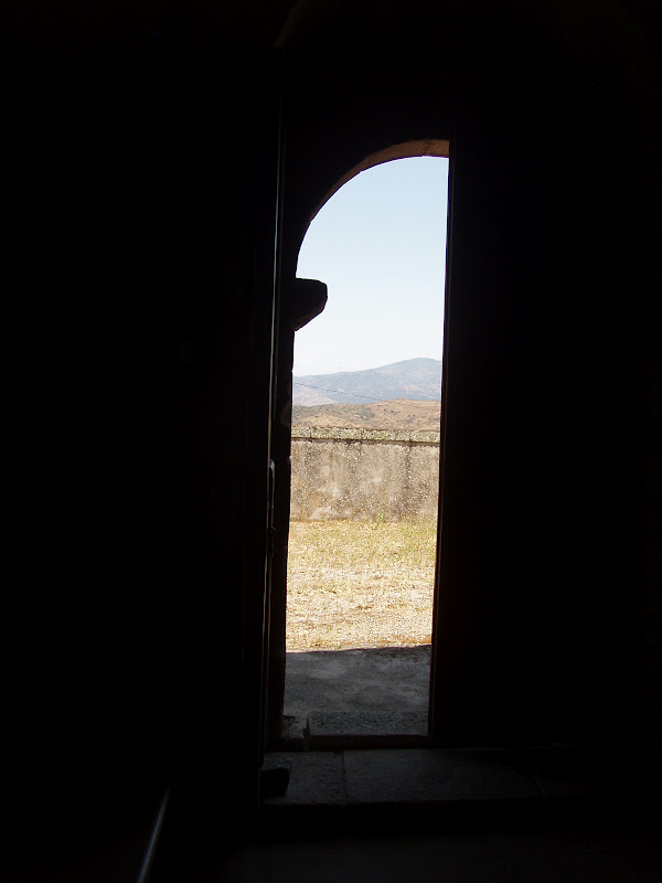 Lagar da Quinta das Laranjeiras em ruína- por detrás da porta aberta estão os tanques em pedra