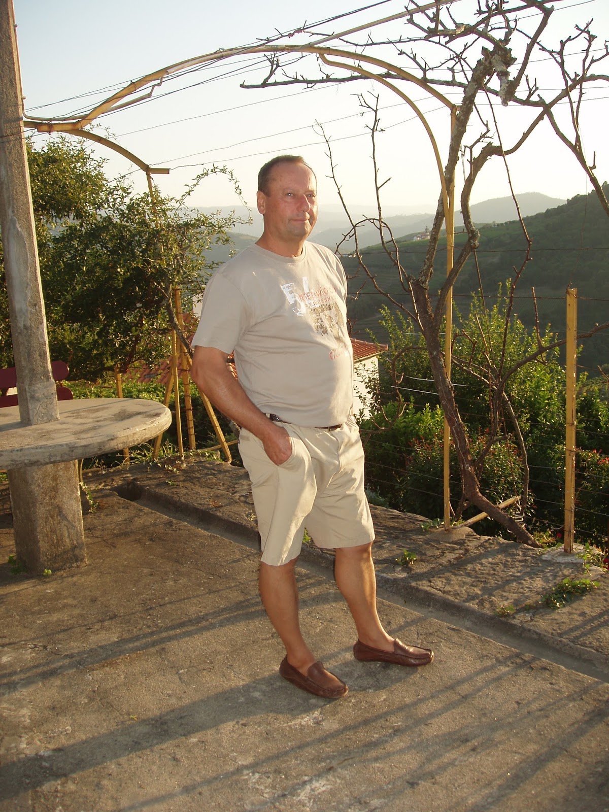 Homem imprevisível, impulsivo, galante, bem humorado, falava, e cantarolava de improviso onde a mentira era uma constante - engodo que rápido captei com a ajuda de outros amigos - em seu abono me disseram " ele é assim da paródia mas é um homem muito bem sucedido tal como a mulher nos negócios e o filho com um copito é igual ". Acabei por perceber que tem um pronto a vestir - casualmente ouvi uma outra turista que os reconheceu, e na sua casa tinha comprado o vestido de noiva - coincidências . A mulher encravou a óptica da máquina comprada em Barcelona - não fechava - talvez pelo calor. Ainda lhe dei o nome do meu creme à base de estrogénios para combater as rugas...