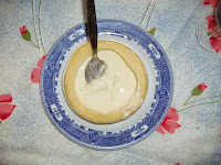 cozida bem exprimida no pano, dois ovos, uma colher de sopa de açúcar amarelo, sumo de