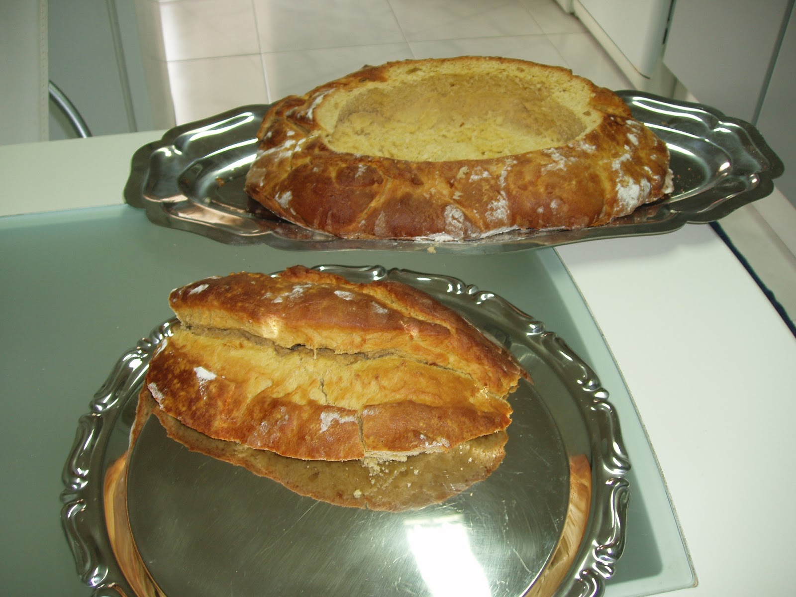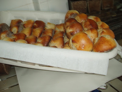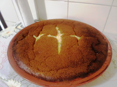 À força de mãos a massa era bem batida pelas mulheres no grande alguidar, com a taça do crescente davam forma redonda aos bolos de massa de gemas amarelinhas, depois tendidas no tabuleiro de panos brancos enfarinhado golpeados na crista em cruz para entrarem no forno. Coziam abrolhados ao meio com maminhas repenicadas de crostas douradas deixando antever o olho do bolo menos cozido, macio, de sabor doce e aroma a limão . Lindos.