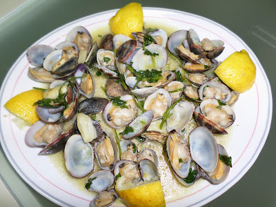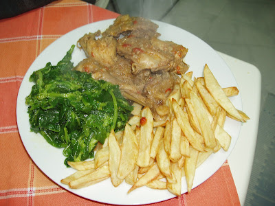 Vitela ou frango. Hoje junto beringela e cenoura. E claro rissóis de berbigão ou pescada.