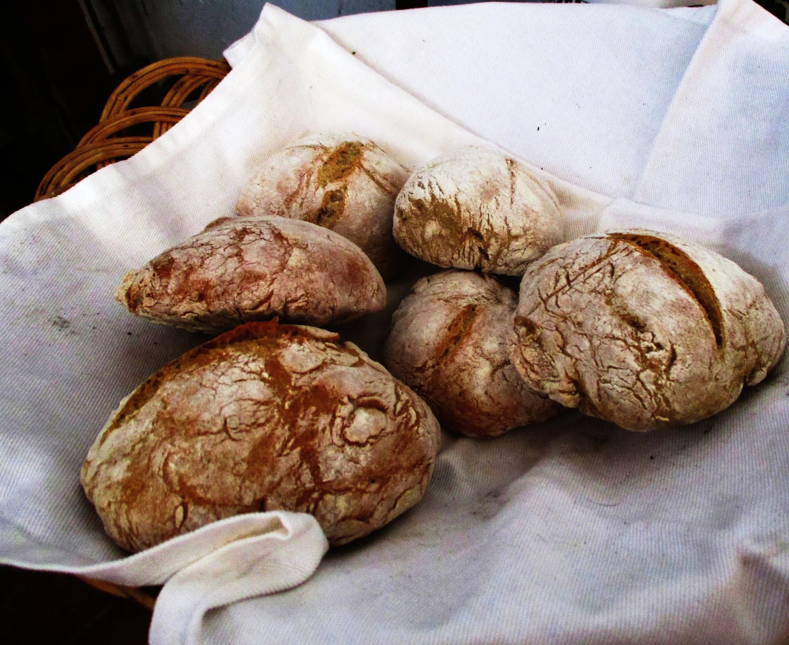 Iguarias de natal onde a riqueza do pormenor da cesta branca de verga e pano de linho com o pão feito por nós no forno a lenha