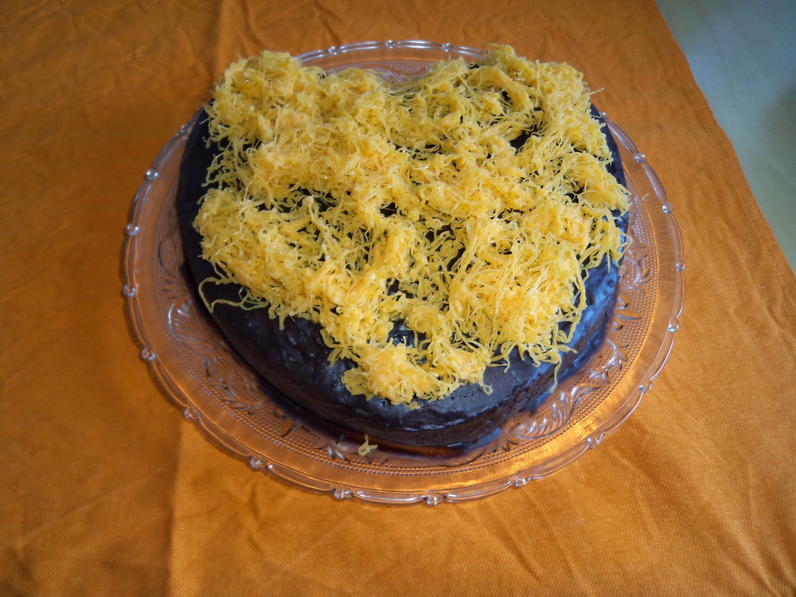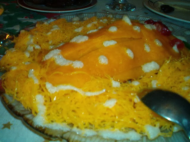 Bolo de natal com calda dos fios d'ovos
