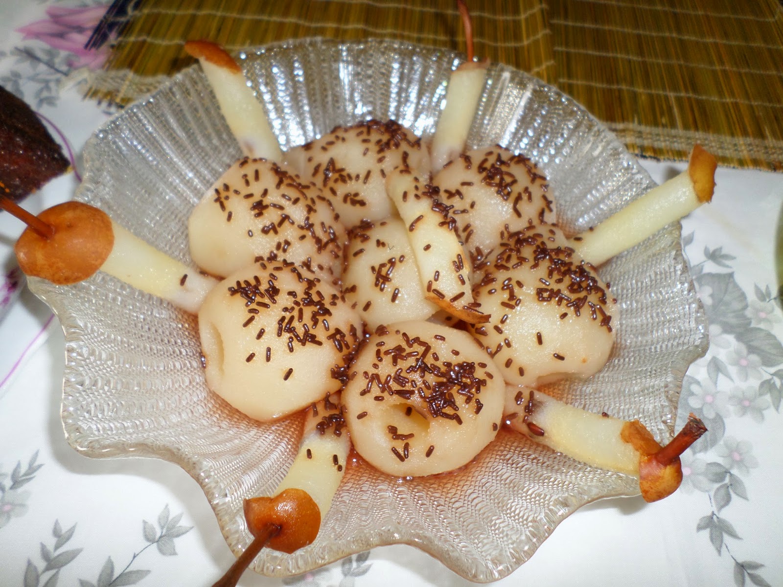 Pêras cozidas com chocolate