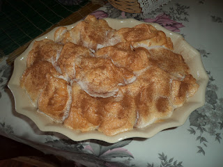 A receita é simples com farinha, raspa de laranja, limão e sumo, azeite e aguardente , esqueci-me de passar a corretilha, a minha avó Piedade, padeira as tendia sentada ao lume no joelho, estas foram na tábua...