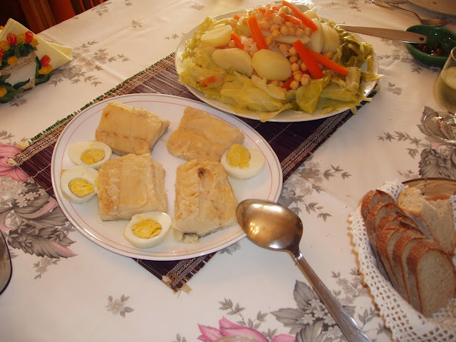 Bacalhau cozido com batatas e feijão-verde ou com raia