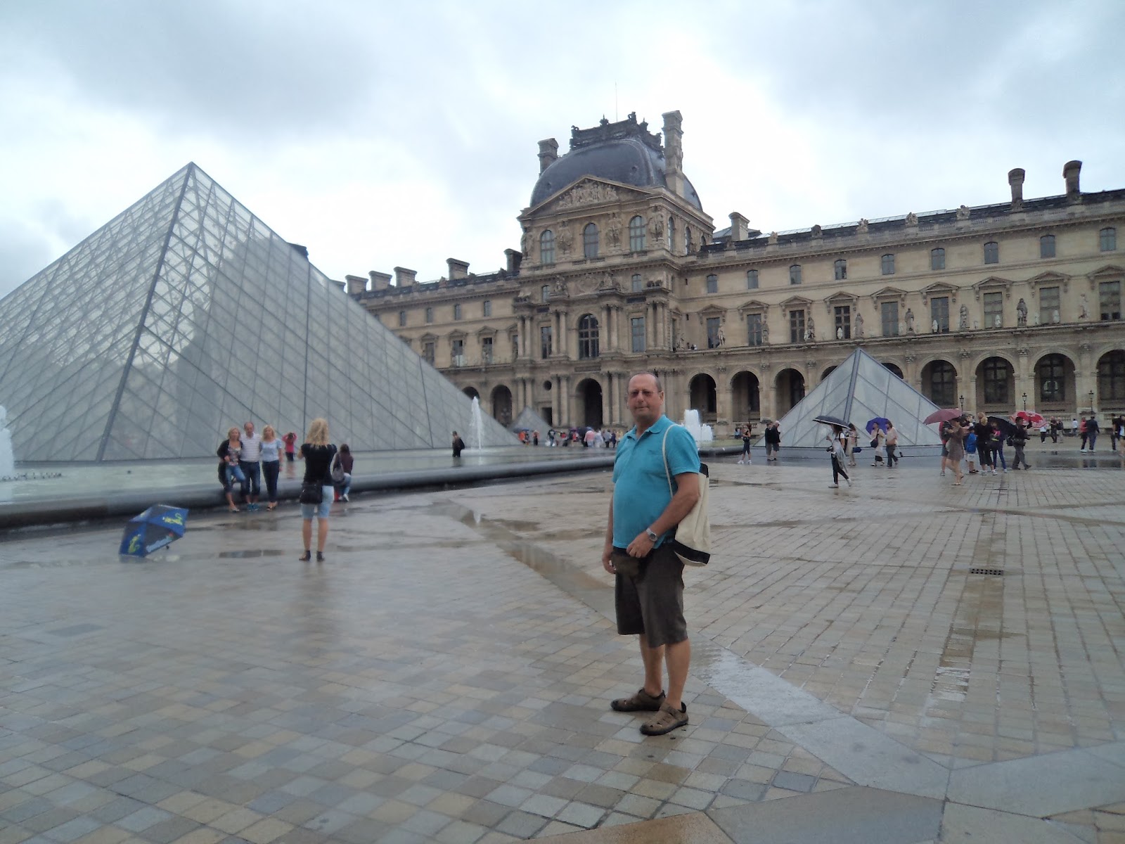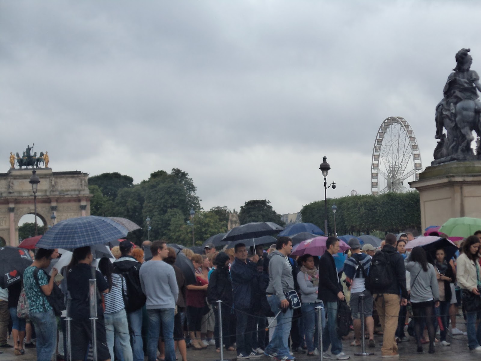 As filas para visitar o Louvre...a chover em pleno agosto de 2013.