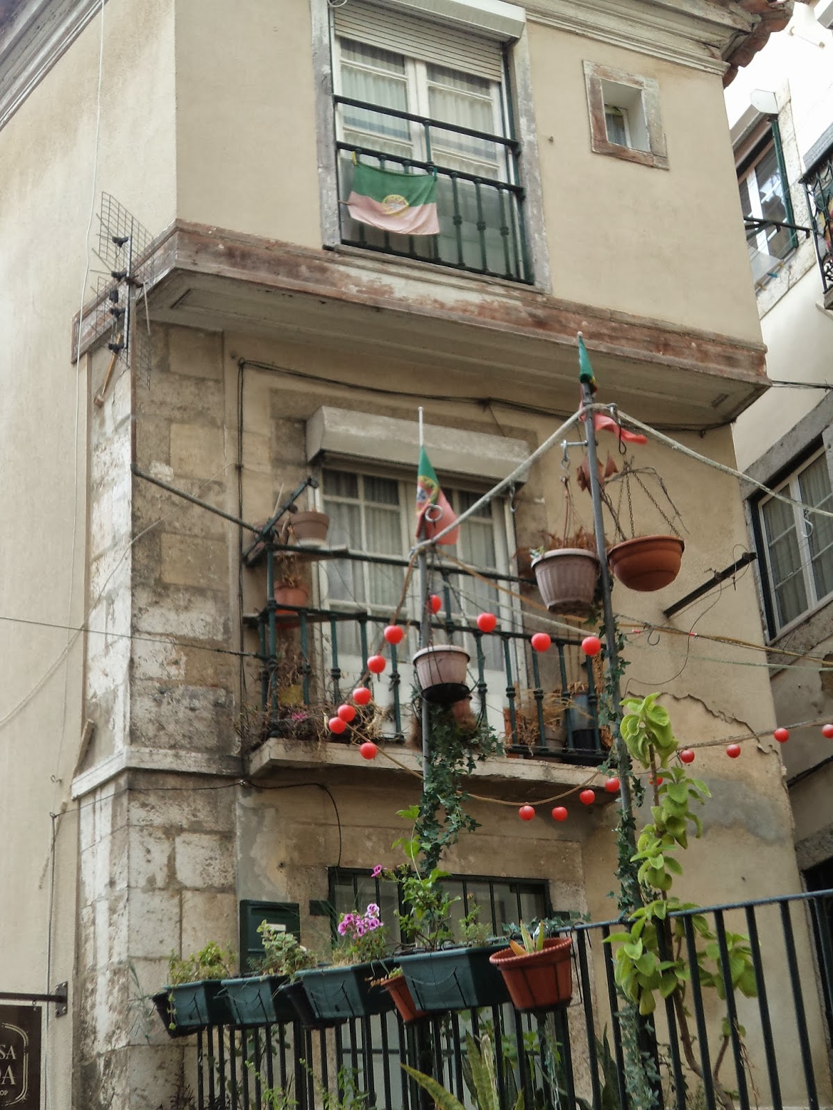 Na frontaria das casas vasos Viúva Lamego |