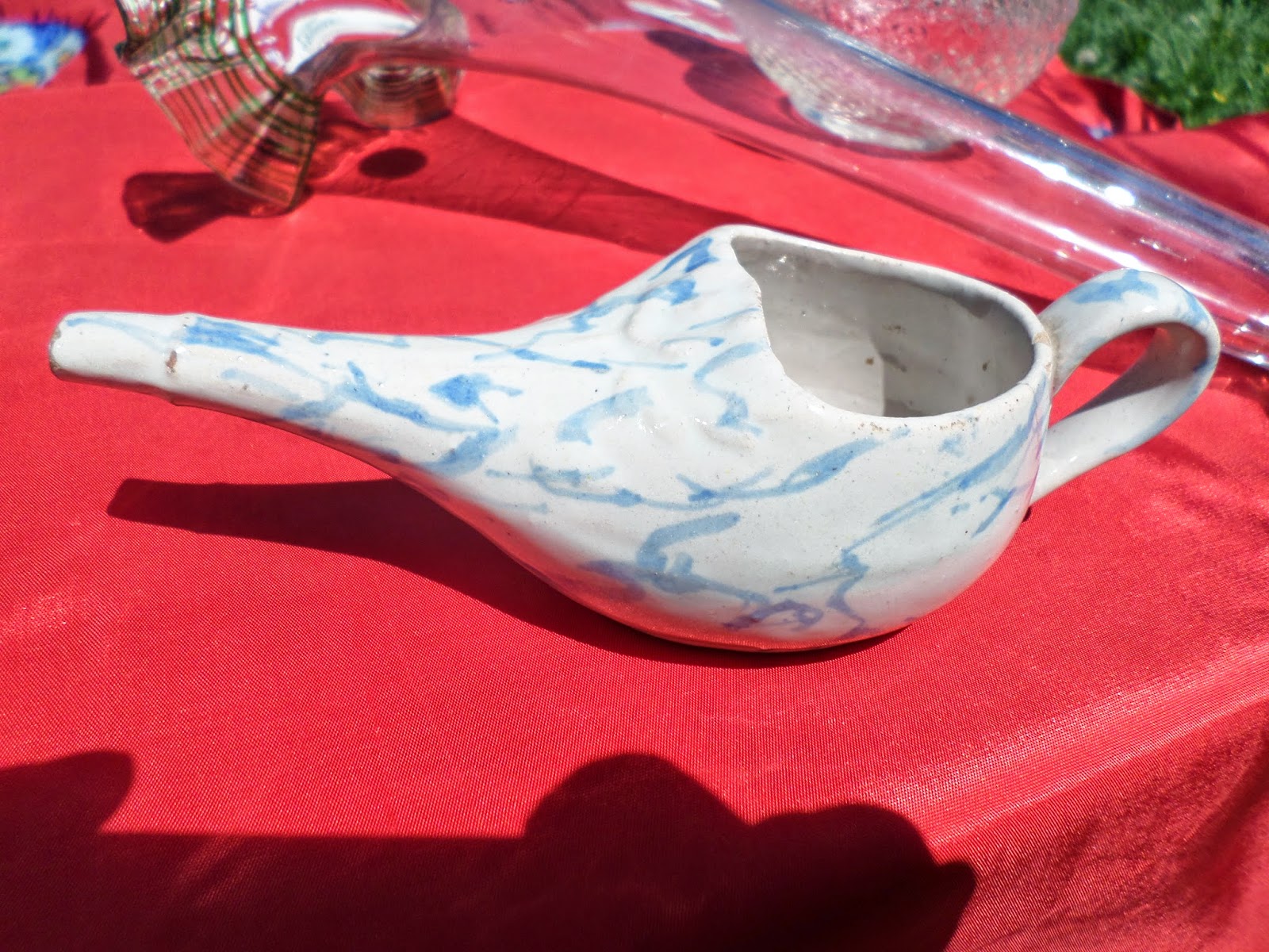 O pobre diabo depois de arrumar o espólio por não ter espaço, fico-se na estreia de uns minúsculos bonecos de plastico, quis deixar na minha banca uma malga de Sacavém das últimas, a mesma que a outra mulher de manhã lhe tinha dado, ficando com o bule minúsculo das Caldas...Já a amiga que entretanto se encostou a ele para vender artesanato se mostrava "infeliz pelo marido a ter deixado entalada nos bancos e..." o hippie de falar farfalhudo pelo tabaco e falta de dentes dizia " ganho dinheiro a fazer cinzeiros de latas, porque gosto, assim as pessoas não sujam o chão e combate-se a poluição..."