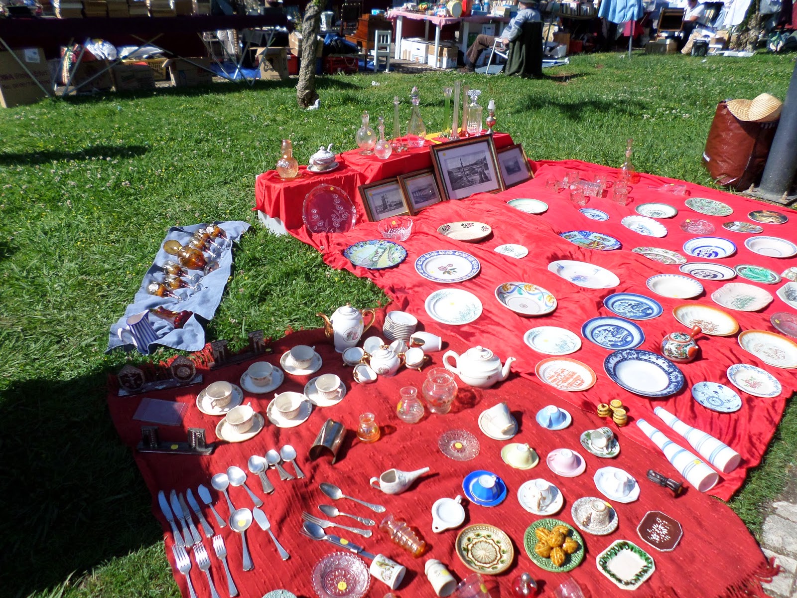 Com obras a decorrer no jardim fui nos últimos dois meses à feira como cliente e na terceira não quis deixar de tentar aventurar-me como vendedora. Cheguei em cima das 8 horas e parti ao encontro da responsável do certame para me inscrever. Só a partir das 9 horas é que distribuem as pessoas pelos lugares dos vendedores de lugar fixo que ficam vagos. Pedi ao "António o Igrejinha" para me guardar os caixotes, homem gentil o fez carinhosamente. Nesse entretanto a matar tempo assisti na espera a complôs de gente que se acha mais esperta que os demais-, uma talzinha engalanada a vermelho atendeu o telemóvel desta maneira " então marido como estás?..." nunca apreciei uma mulher dirigir-se ao marido por marido, o certo será o chamar pelo nome, amor ou,...Jamais marido, soa mal, soa a poder imperial, ou coisa pior...