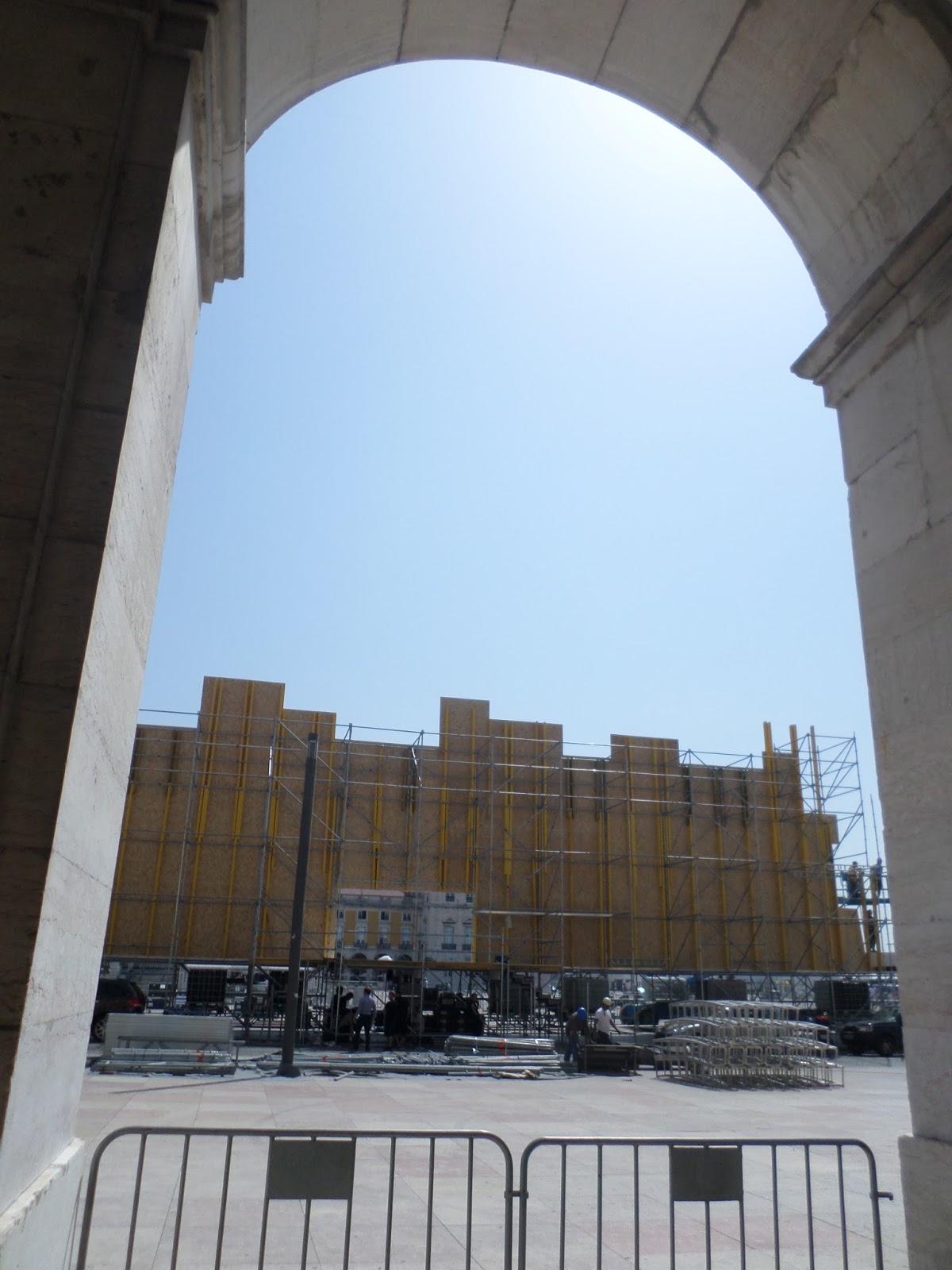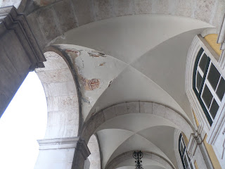 Reparei nas cúpulas das arcadas do Terreiro do Paço que começam a lascar o estuque.