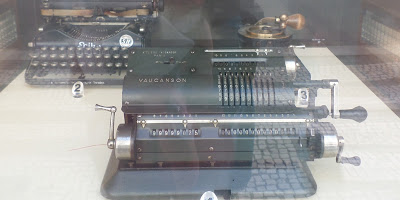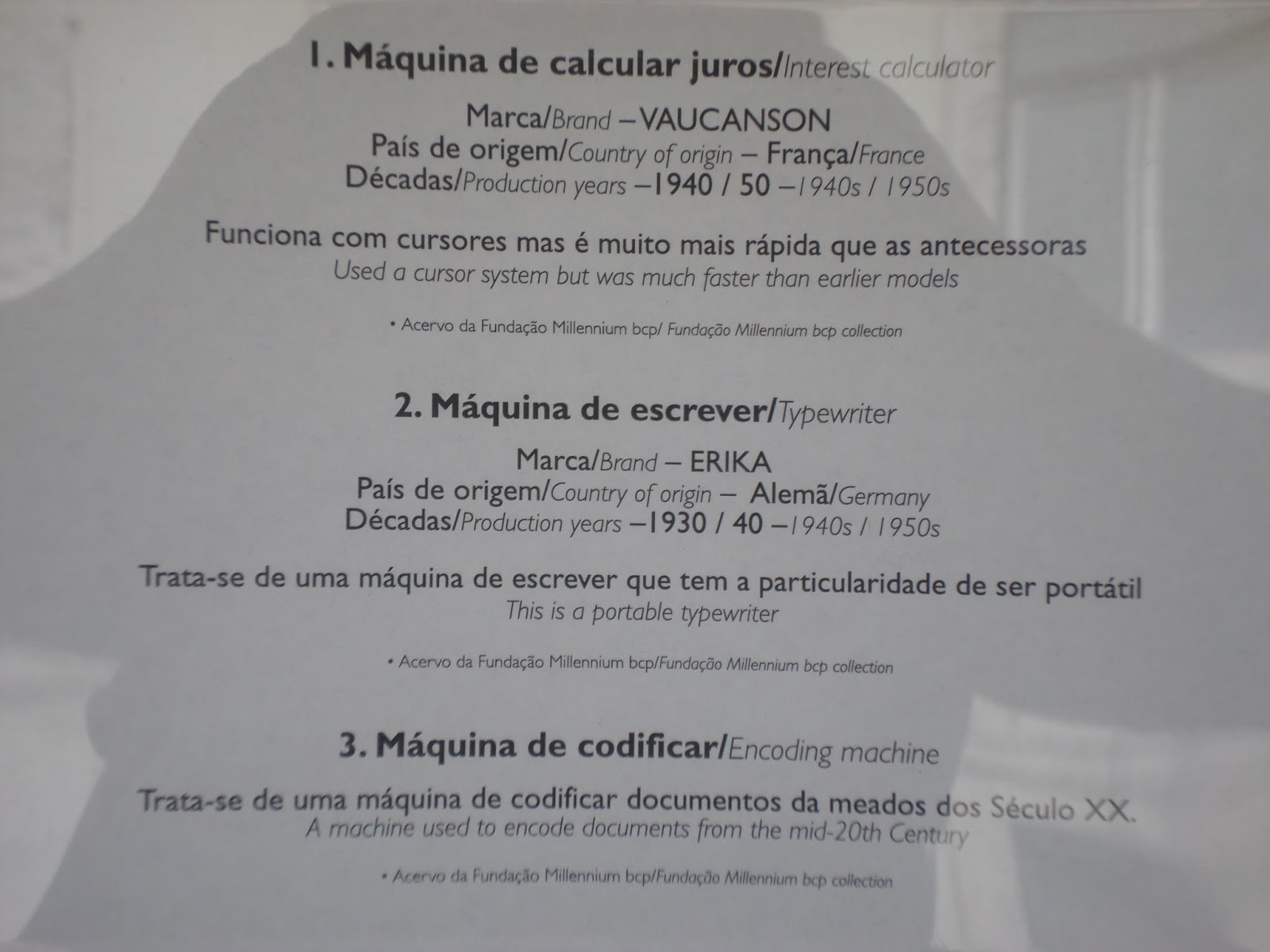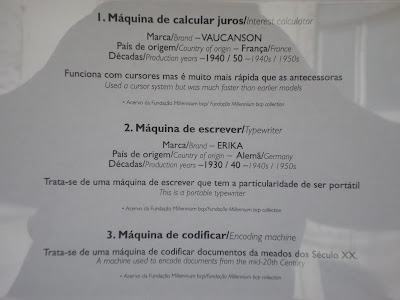 Dei de caras com uma montra do BCP com máquinas antigas. A da frente, máquina de cálculo de juros, ainda trabalhei com uma na década de 80, na sede na Rua do Ouro. Era impressionante a técnica de fazê-la trabalhar à manivela, e o seu barulho sonante.