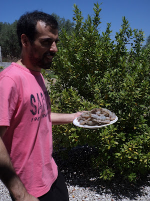 Mas antes ao entardecer fomos ao pomar apanhar fruta.