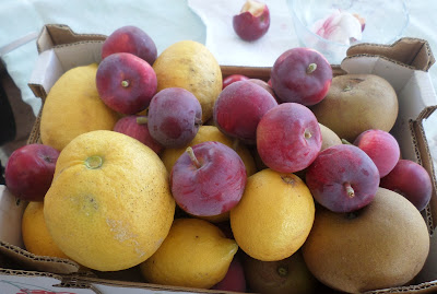 E maças Casanova, que nos levaram na conversa do amante fervoroso... e pêssegos de roer, maças raineta, limões, ameixas amarelas e,...