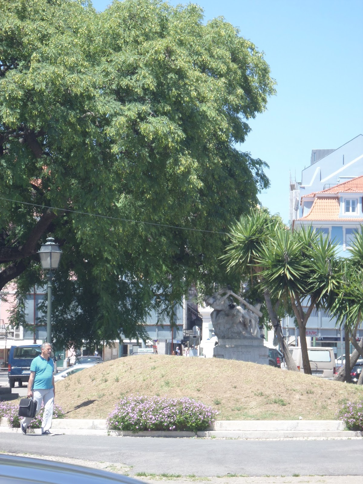 As oliveiras no Cais, estavam a ser regadas. Uma carrinha com um depósito de água, serviço que deveria ser efetuado de manhã, com mangueira, e não com um balde às 3 da tarde, não é hora de se regar!