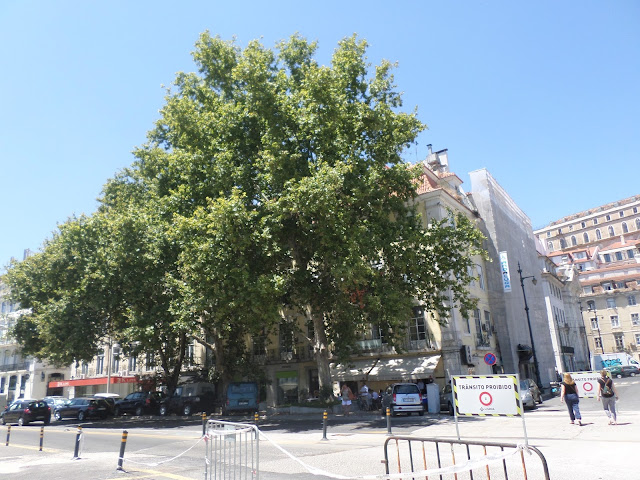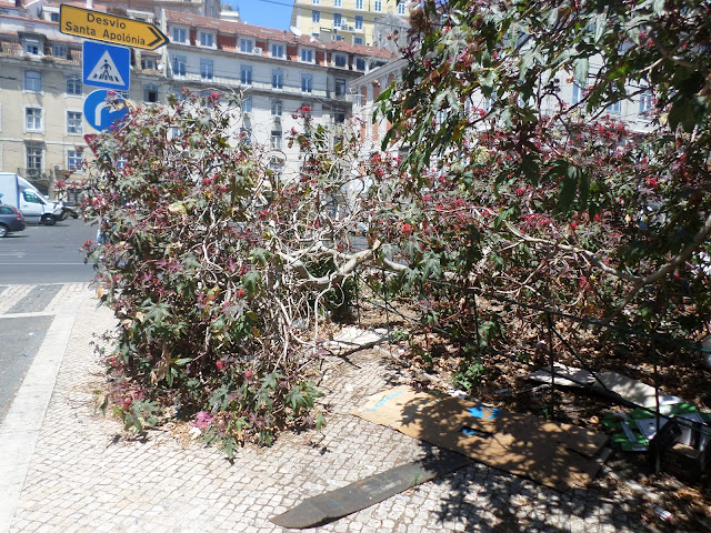 Num prédio no tardoz da CGD da Rua do Ouro, em obras, de porta aberta descobri este lambril de azulejos em policromia fantástico, no edifício funciona o Sindicato dos futebolistas prodissionais.No largo do Corpo Santo,no limite do estacionamento, a vegetação de rícino alastrou, há tempos alguns ramos cederam com a ventania, incrível ninguém da junta de freguesia que tem de limpar os passeios ainda reparou, o que é bom de ver e está à vista de quem quer ver... Os arbustos tem de ser podados, e o espaço limpo.