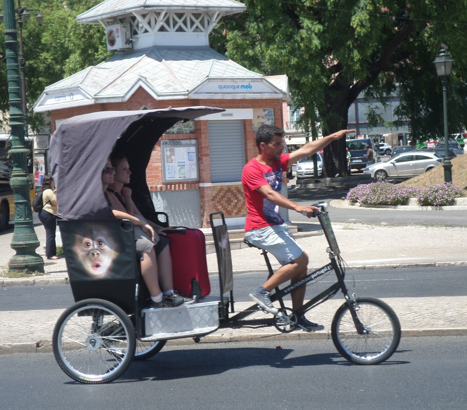 Um novo tipo de transporte, a pedal, se a moda pegar a juntar os tuk tuk, daqui a um ano é impossível transitar na cidade... Urge a saída da lei que os regulamenta.