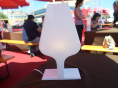 As mesas com cobertura em castanho, engalanadas com candeeeiro aceso em forma de copo.