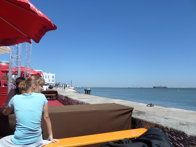 Saboreámos um pratinho de salada de polvo com mistura de pimentos, azeitonas galegas e pãozinho bem cozido a lenha e claro boa cerveja