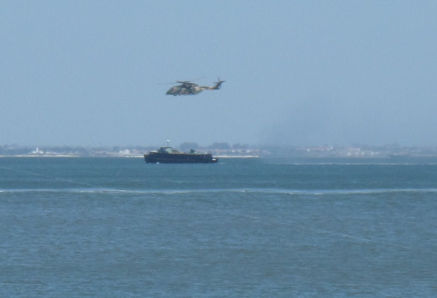 Treino do heli da marinha, com a vedeta(barco) que transporta funcionários da base do Alfeite para o cais no Campo das Cebolas.