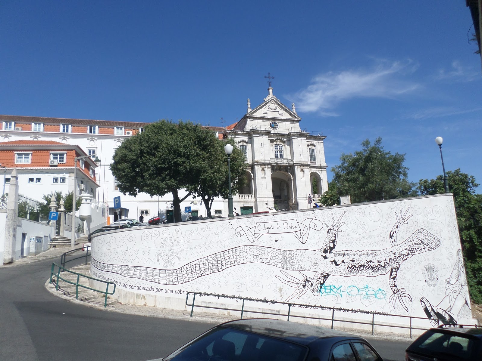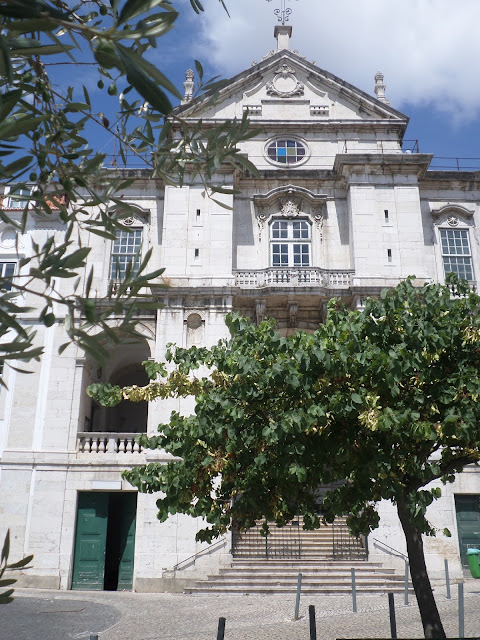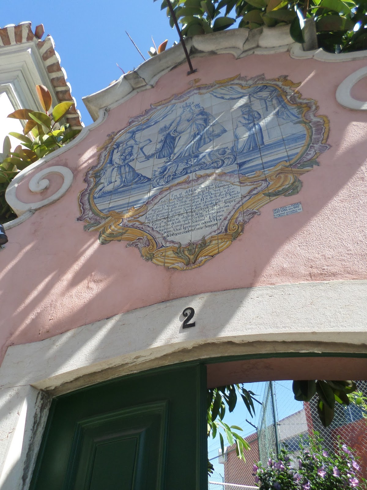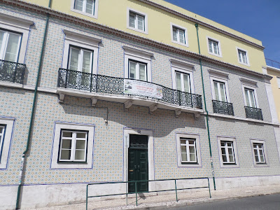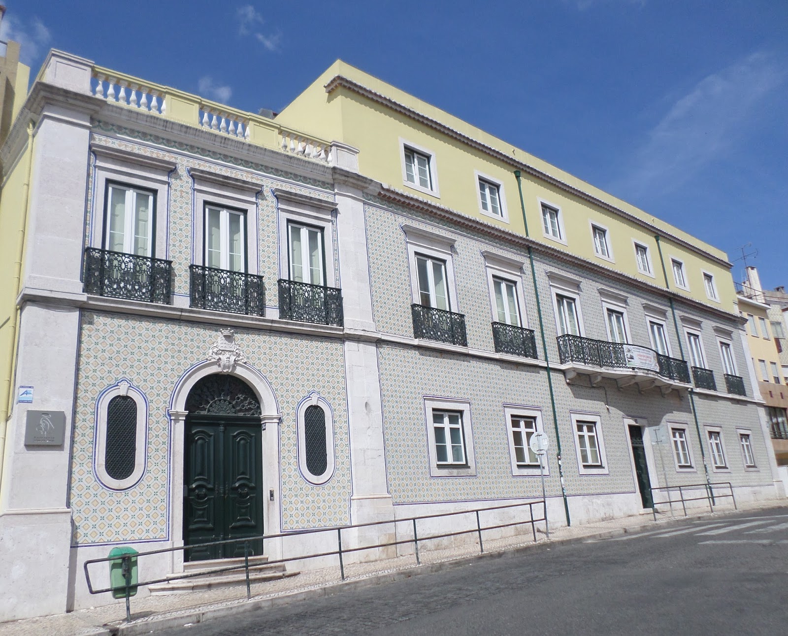 Frontaria forrada a azulejos em policromia com debruo a filete fino em azul nas ombreiras das portas e janelas, de duplo beirado e belos gradeamentos em ferro forjado. Numa esplanada tabelei conversa com dois bons homens, que me disseram ter sido pertença de padres(?)-,um de gorda idade vestido de t-shirt verde ervilha, deslumbrante cor de verão a condizer com o belo olhar lânguido esverdeado, qual lago de nenúfares em água morna, de cariz muito simpático, super dialogante com o Vicente, sendo o outro, muito mais jovem, foi jornalista nos EUA, nascido na Costa de Caparica, com genes de forte aventureiro(?) ditados pelo brilho do olhar e do enfoque marcante à temática que se falava (zelo e desmazelo da cidade, do certo e do errado, da falta de visão e...) Nele senti a cumplicidade pela crítica acutilante, pela notícia, e o que deve ser a verdadeira notícia, disse-me o seu nome, debalde nem lamiré dele, quiçá Tino? Disso sinto pena, logo eu que até me acho de boa memória, escapou-me na pressa a descer a calçada, a olhar buracos e a fugir do sol matreiro do meio dia ...