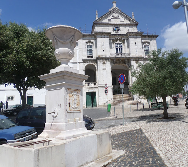 O largo com o rico fontanário e banquinhos para apreciar as vistas sobre o Tejo