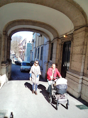 Almoçamos no tasco de duas portas que nos tinham falado, mas afinal tem quatro portas, o dono, homem simpático, abriu uma de propósito para o carrinho da Laura entrar.Comemos muito bem, aqui a batata frita ainda é a tradicional, caseira, bem frita, ao invés da servida na Cervejaria Trindade, pré congeladas...Refastelados com uma litrada de bom tinto!