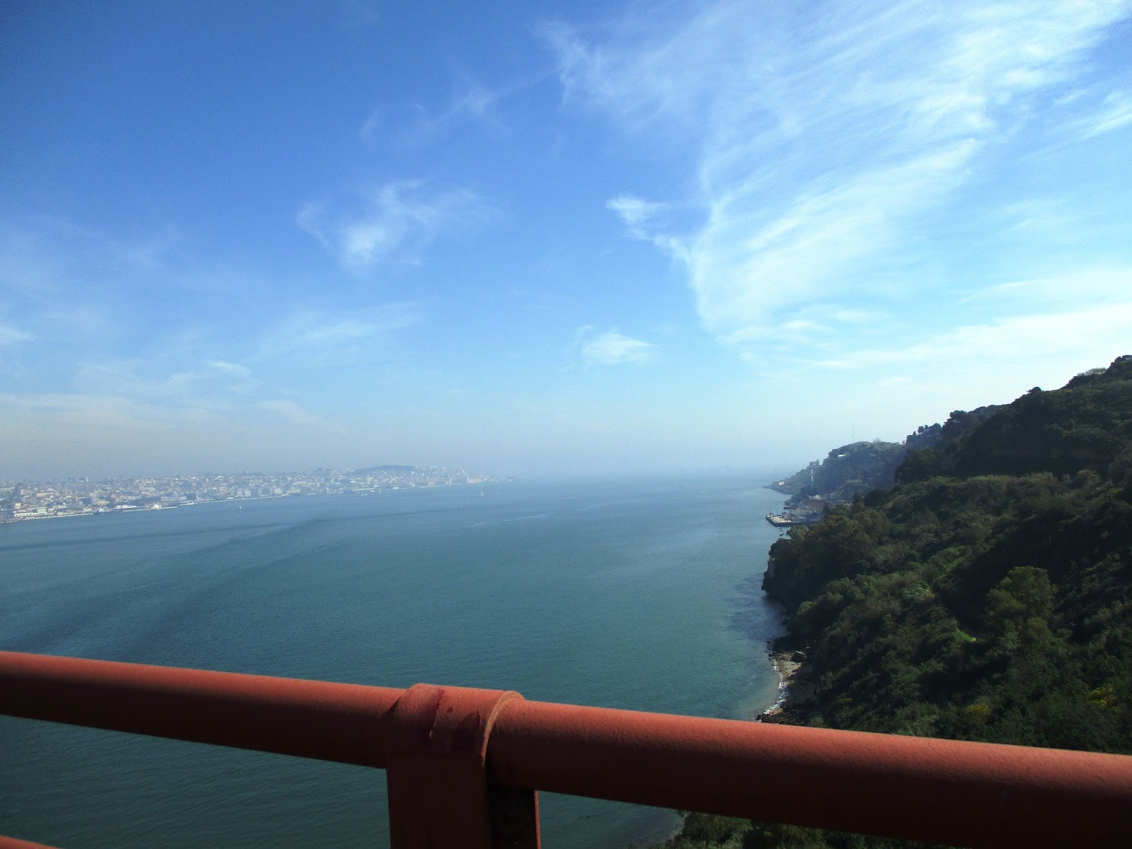 Aventura fantástica vivida em manhã com tempo maravilhoso com o Cristo Rei engalanado de balões e no seu varandim de madeira no contorno da arriba da falésia havia centenas de mirones e nós a caminhar na ponte onde encontrei um chapéu já pisado, mas serviu...