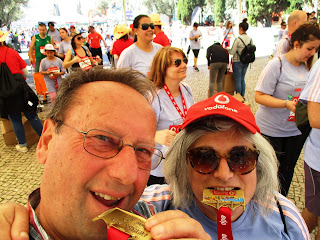 Assistimos a uma excelente organização,onde não faltava polícia, médicos, meios de filmagem e pessoal de limpeza. Após o 3 km tabelámos conversa com um casal acompanhado do seu filho de 8