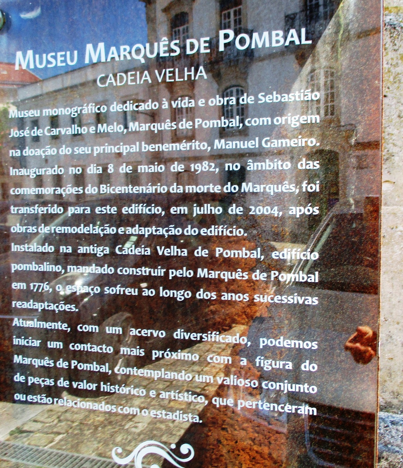 Antes da Páscoa em ida a Pombal com a minha querida mãe para fazer uns exames cardiológicos numa Clínica em dia de tremendo calor sem estacionamento à vista até que ao longe distingui um descampado em terra para onde se deslocavam alguns carros, e assim deixado à estorreira do sol em limite de boas vivendas engalanadas de jardins floridos. Antes do almoço uma voltinha à parte antiga da cidade a procurar restaurante dei conta do Museu do Marquês de Pombal onde lancei mote para visita depois de estômago reconfortado numa churrasqueira ao Largo do Cardal onde saboreei migas de couve verdíssima, bem cozida, saborosa, que me encheu a alma de Sicó para em desplante perguntar à empregada a qualidade da couve em acto imediato interrompe defronte a cliente sentada com a família, pelo trato seja fidelizada ...obviamente se tratava de couve galega!