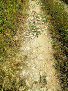 Líquenes alapados em ocre na pedra a imitar uma pinturaDei conta de grandes troços de calçada, sobretudo nas descidas, graças às chuvas não deixa que os detritos se acumulem.Troços de calçada romana