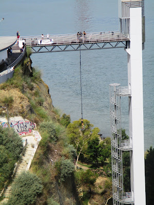 O passadiço do elevador serve para um desporto que não sei nome, suspensos por um elástico, ouvi o sonante gritoooooooooAinda persiste muito empedrado em basalto que era trazido de Lisboa
