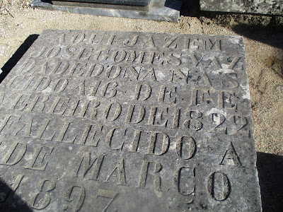 Quase na entrada um grande jazigo cujo apelido "Grego" me deixou a falar alto , as duas senhoras que o limpavam disseram-me que se trata de alcunha. Muito interessante o uso das alcunhas na teima de as deixar no nome como se fosse de facto o apelido. Curiosa a razão de ser chamado de "grego"...