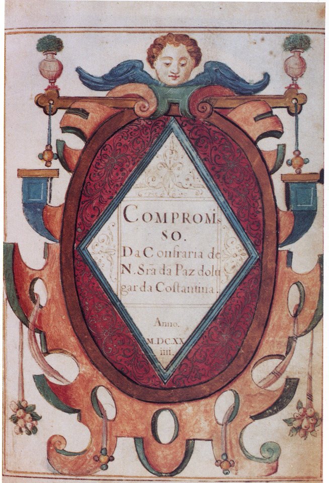 «Eu El Reyfaço saber aos que este Alvará virem que os officiaes da confraria da nossa senhora da paz do Lugar da Constantina na freguesia de Ansião termo da cidade de Coimbra me emviarão dizer por sua petição que a dita comfraria hia em grande augmento por causa das grandes maravilhas e mylagres que a Virgem nossa senhora obrava cada dia e pêra que o serviço da senhora se podesse conservar e se fizesse com a perfeição que comvinha ordenarão por comum consentimento de todos o Compromisso que oferecido o qual corregedor e provedor daquella comarca vira e aprovara como constava do assento que disso sejizera Pedindo me lhes fizesse merçe de lho mandar confirmar, E visto seu Requerimento e a informação que se ouve pello doutor Diogo ferreira de Carvalho dezembargador da casa da suplicação que vio o dito Compromisso e he o atras escrito em onze meãs folhas como esta e querendo lhes fazer graça e merçe hey por bem e me apraz de lhes confirmar como de feito por este Alvora confirmo hey por confirmado o dito compromisso na forma e nossa maneira que neíle se contem e quero que assise cumpra eguarde como nelíe se declara e mando a todos os dezembargadores, corregedores, provedores, ouvidores, juizes, justiças officiaes e pessoas a que o conhecimento disto pertencer que assi o cumprão e guardem ejaçam inteiramente comprir e guardar. E me praz que valha tenha Jorça e vigor como sejbra carta Jeita em meu nome por mim assinada sem embargo de ordenação do segundo Livro titolo corenta em contrario Pedro Alvarez o fez em Lisboa a trinta de Outubro de mil seiscentos e vinte e quatro. Manoel Jugundez o Jez escrever.