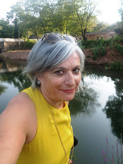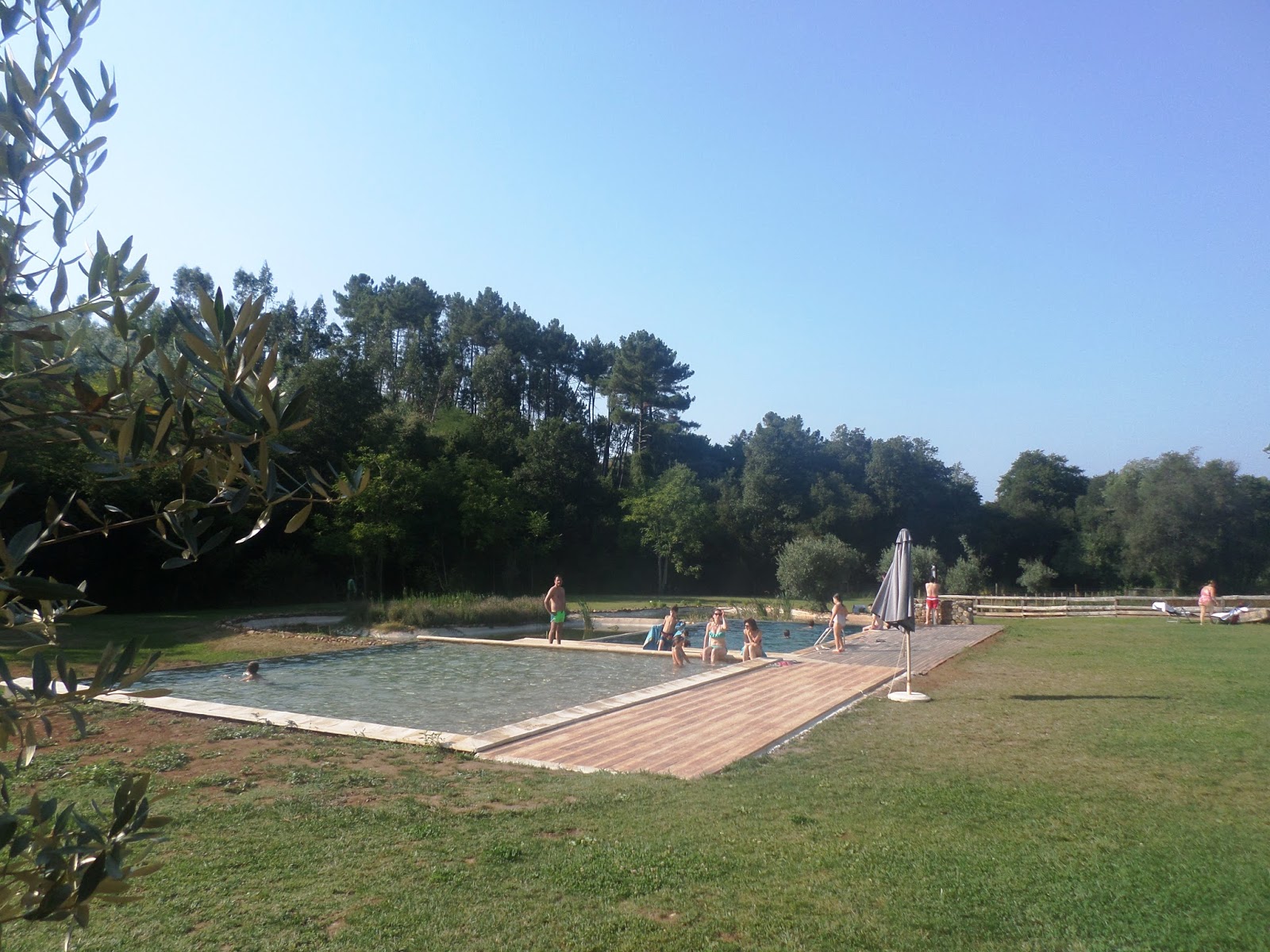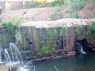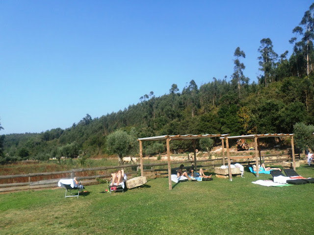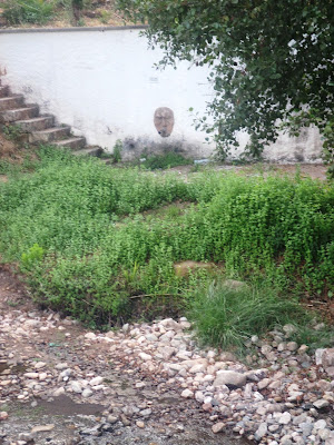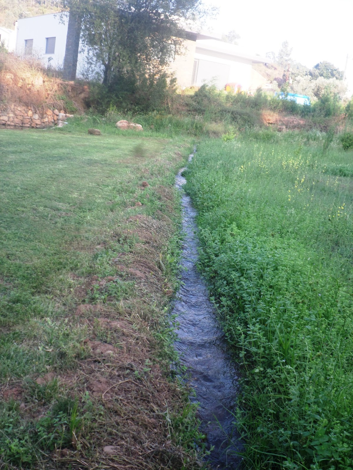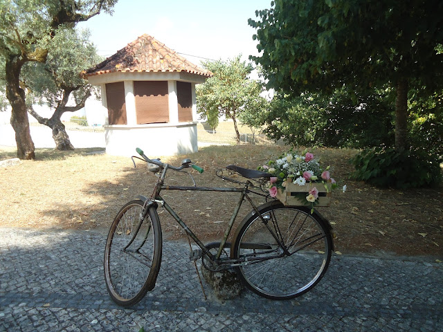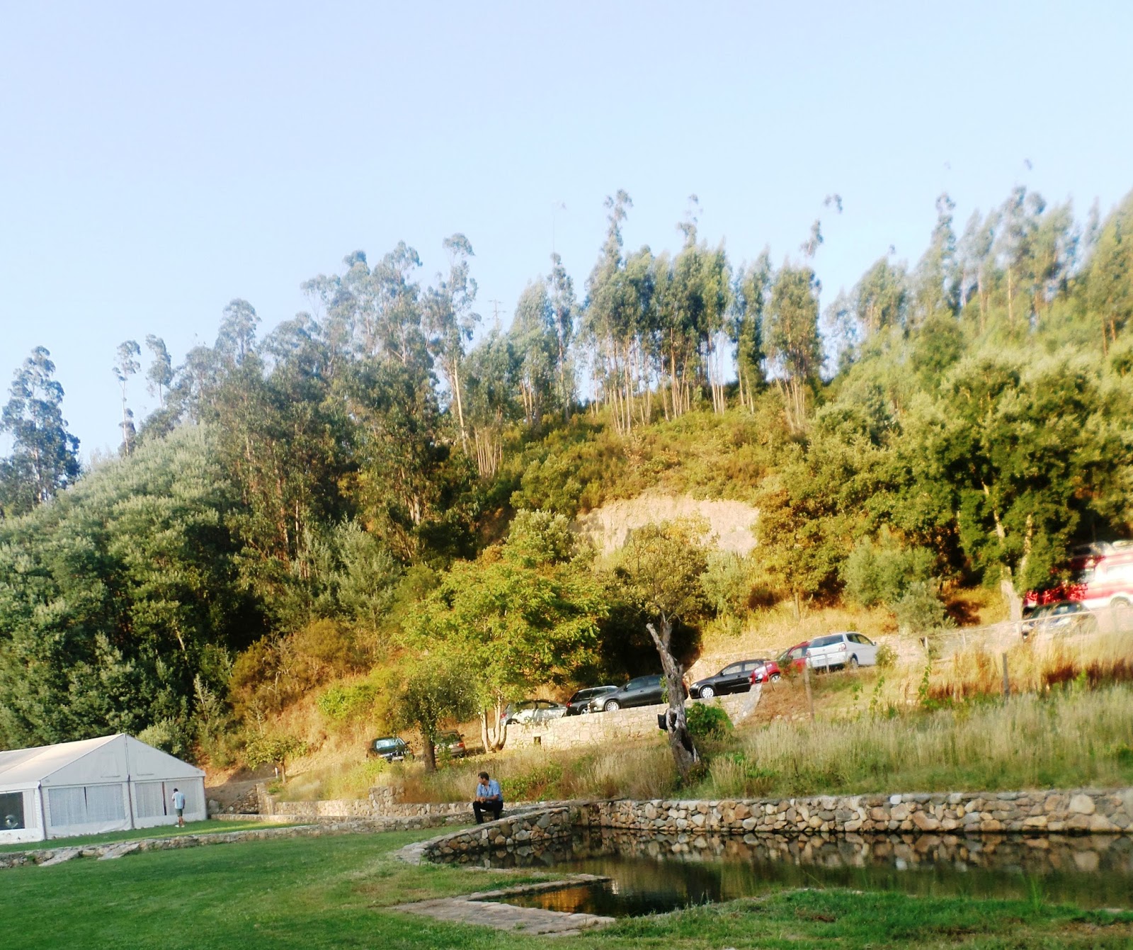 Havia gente refastelada em cadeirões, outros na jogatina das cartas e ainda outros no bar enquanto isso depois de ter feito a minha sessão fotográfica no espelho de água-, nada mais do que a simpática réplica da villa romana do Rabaçal, para logo me deixar partir relvado fora, debalde descalça que os pés já não cabiam nas sandálias, apesar dos pés doridos senti sensação maravilhosa com a relva a entrar pelos dedos, também com a terra macia nas margens da levada d' água, de forte corrente, quem diria por aqui fartura dela, sendo que o Nabão e o Dueça devem nascer do mesmo algar no Maciço de Sicó e o Nabão vai seco...Ora aqui ainda caminhava na calçada...