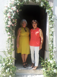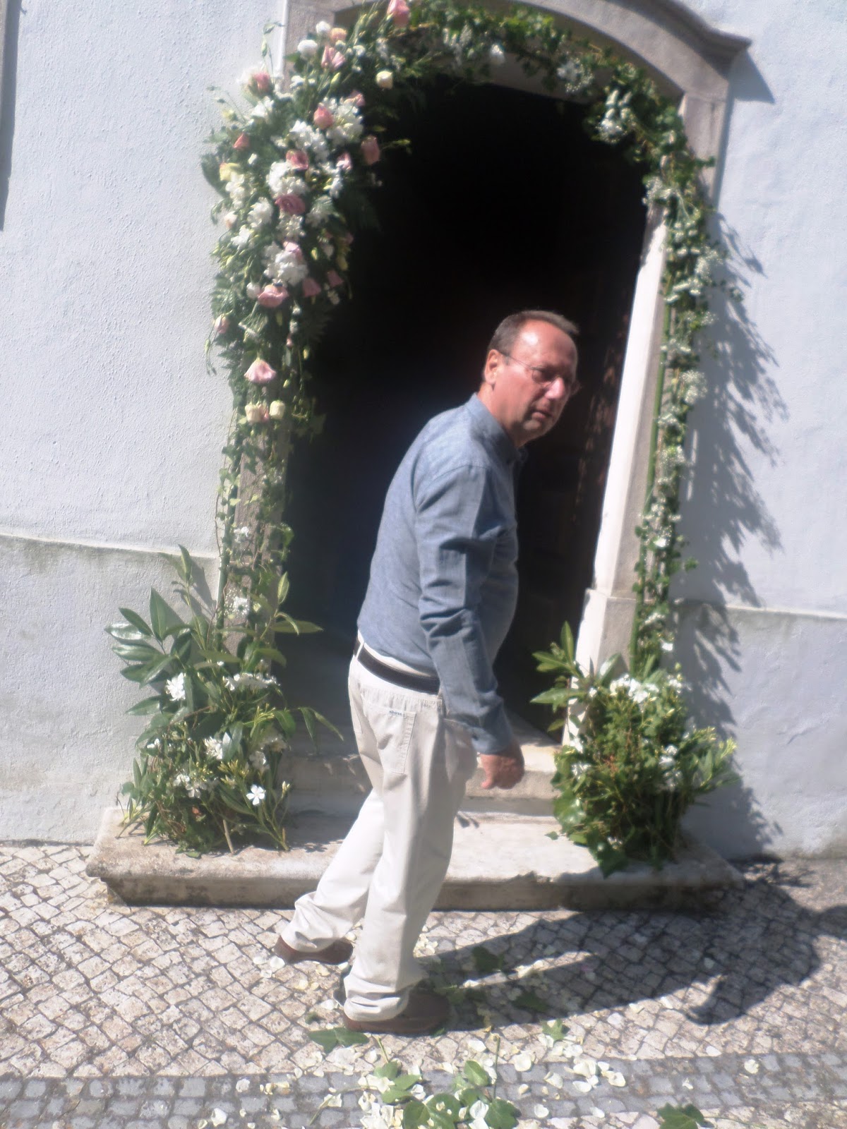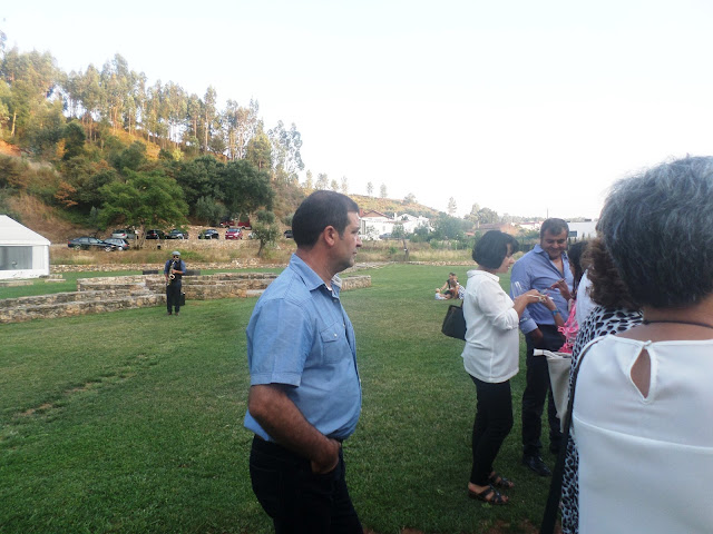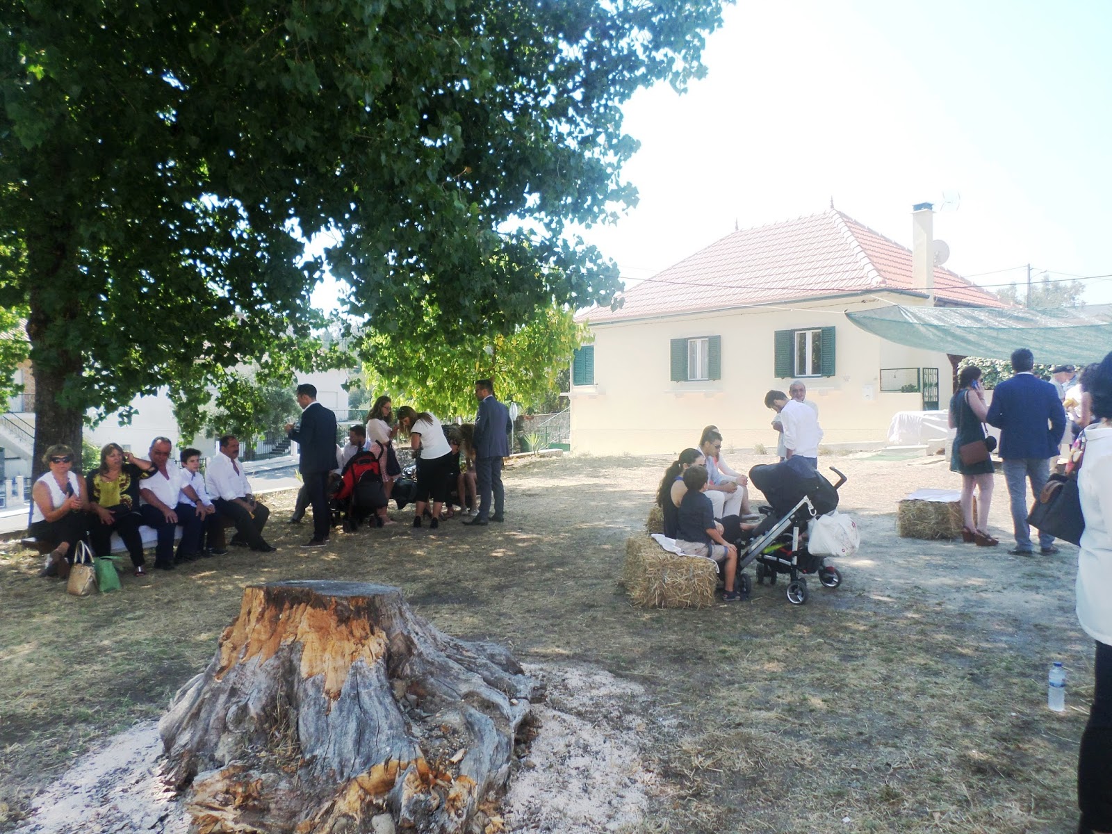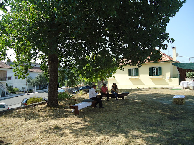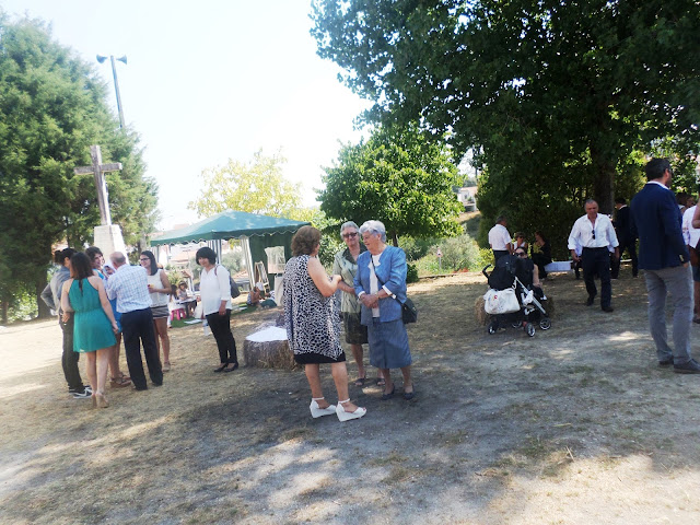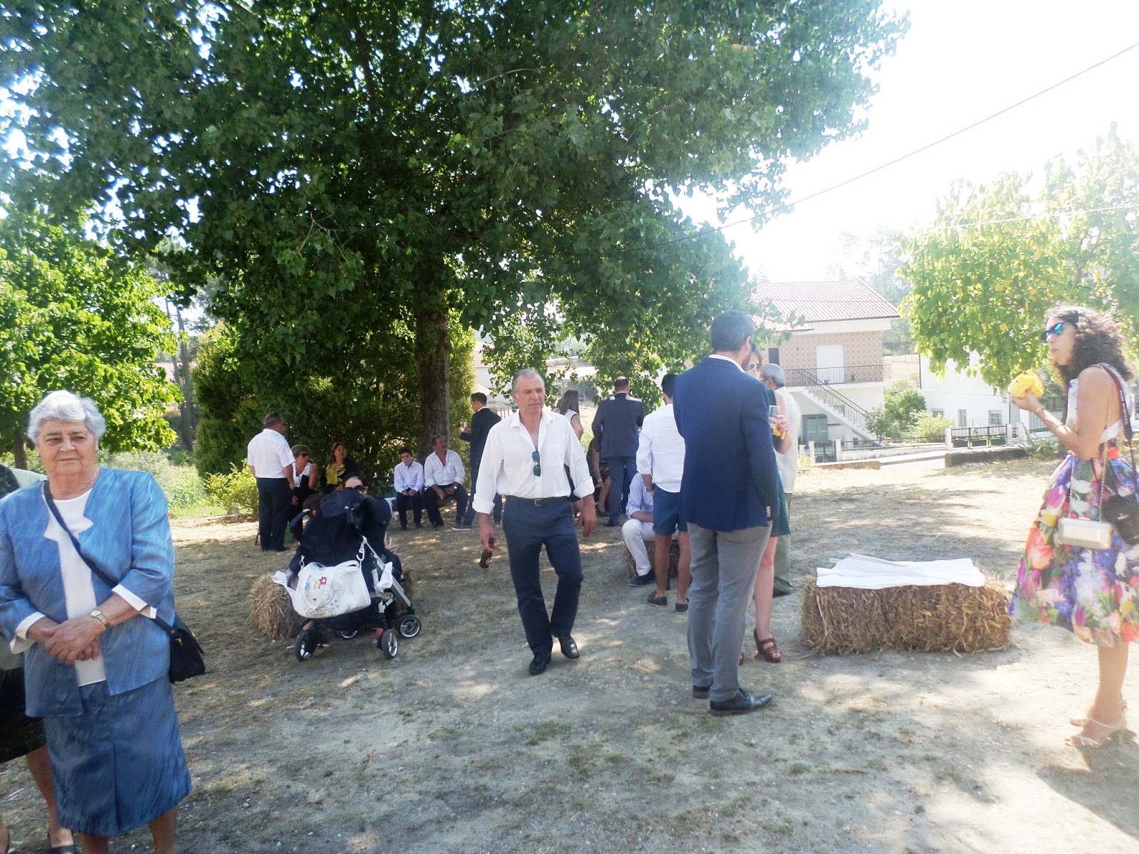Os convidados sentados no adro, uns nos bancos corridos da capela, em almofadas nos bancos no tardoz da capela e ainda outros nos fardos de palha estrategicamente dispostos cobertos com lençóis de linho.O terreiro foi regado pela minha irmã a regador e depois à mangueirada para estar mais fresco.