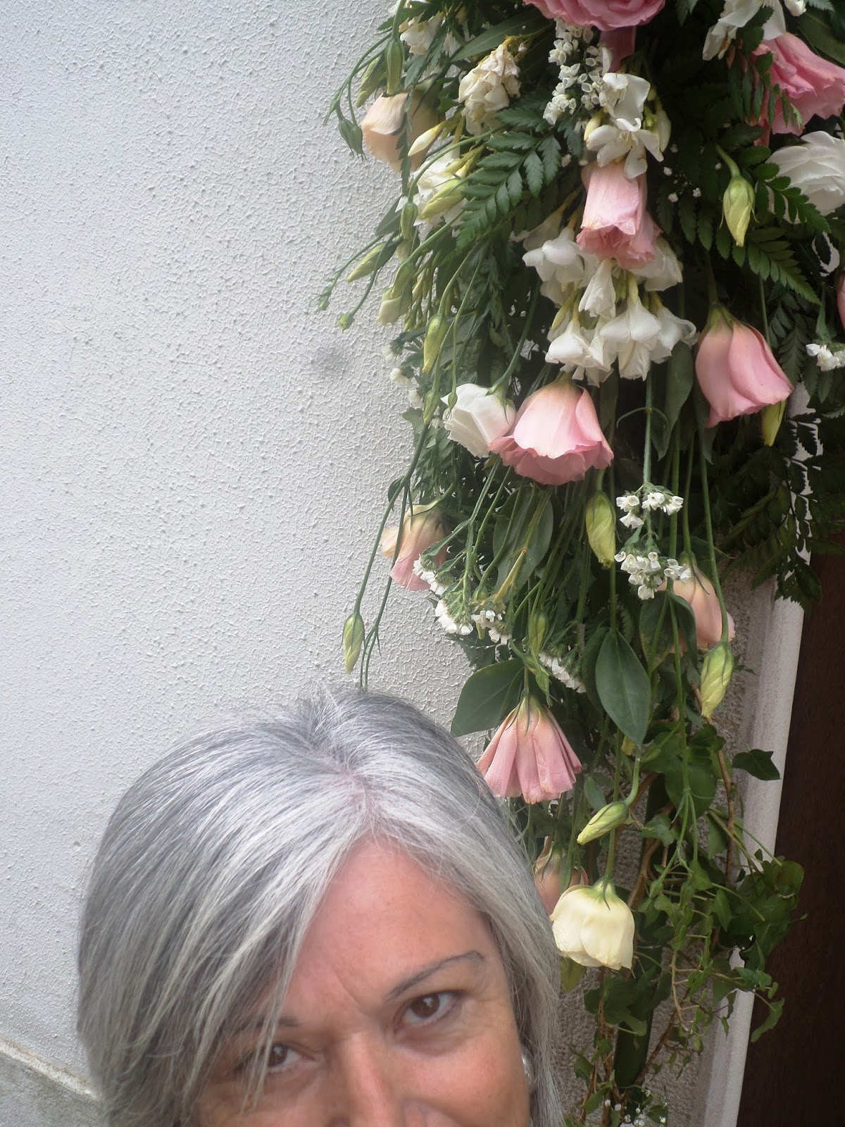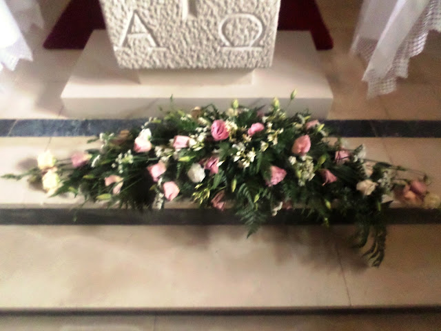 Par depois ir murchar aos pés do altar , porque as esferas de margaridas postas aos pés da mísula dos Santos, foram uma para a prima Júlia e outra para a prima São, sendo que a do altar com pérolas foi para a minha mãe, e na capela deixámos ficar a da janela e a que esteve aos pés do altar grande.