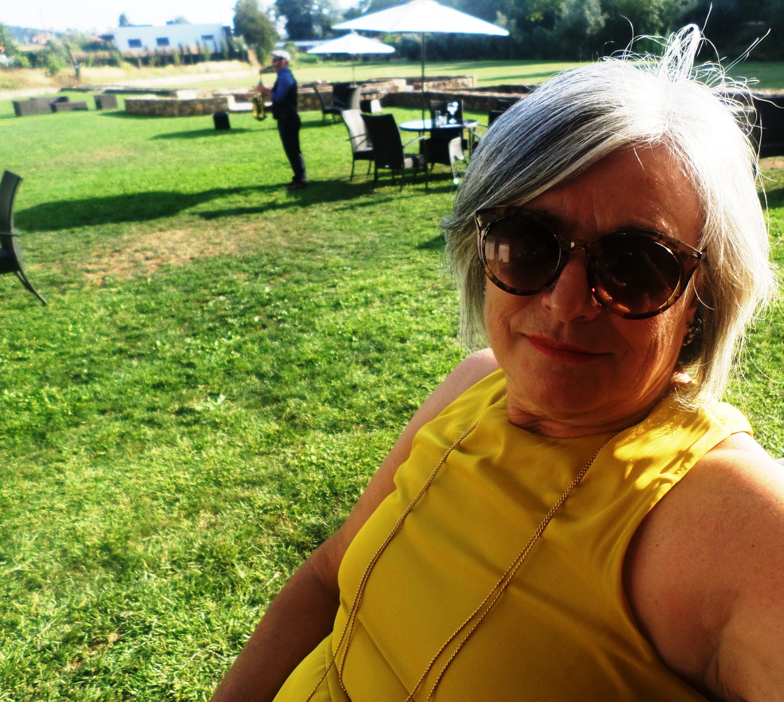 Selfie com o meu cordão d'oiro a esvoaçar, que não via a luz do sol há uns 20 anos, o tempo que está no cofre do Banco para em teima deixar rastos alagados na água de cobiça com os brincos e o anel em diamantes pretos e a ,...