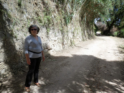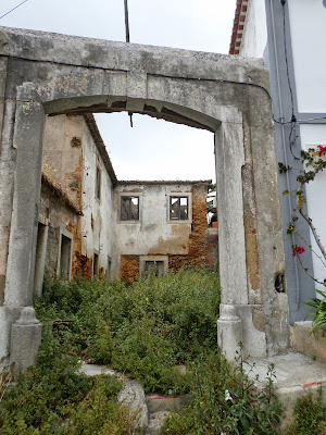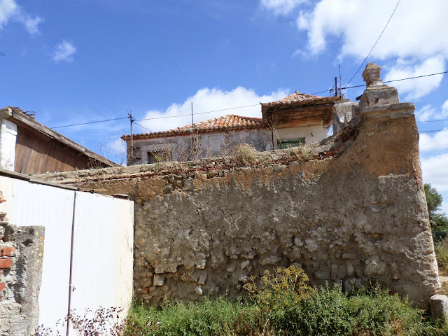 O caminho de aceso à quinta , atrás de mim o muro em pedra primitivo, ao fundo caiu uma árvore seca, tivemos de nos baixar para passar. O antigo proprietário-, o Sr. António faleceu há coisa de um ano. Fala-se que são muitos os herdeiros. Se para tal engenho houver arte, fácil será a um solicitador ou advogado convocar todos os interessados para venderem a herança, caso não aceitarem, expropriam para bem público, procedendo à limpeza do espaço que merece dignidade.Muitos anexos foram destruídos,houve gente que foi daqui deslocalizada com casas atribuídas pela câmara, mas outros achadiços , sem eira nem beira, aproveitadores -, porque ouvi barulhos, portões fechados e cães a ladrar.