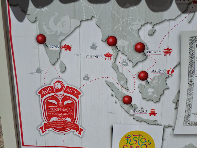 Senti o clique nesta temática ontem em Lisboa, na Praça da Figueira, onde decorria uma feirinha de produtos regionais com tasquinhas, dei de caras num quiosque de gelados que tinha umas lonas que me chamaram a atenção -, 400 anos da Peregrinação de Fernão Mendes Pinto.