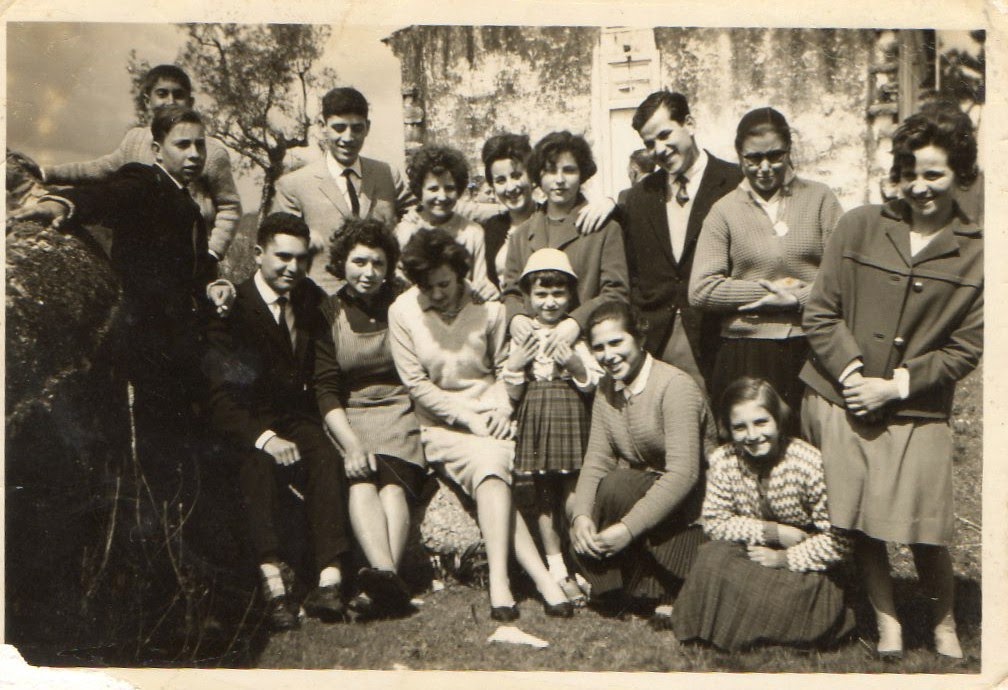 De uma prima do meu pai, a Tina do Bairro de Santo António no início de 60, está parte da mocidade de Ansião, entre elas, estou eu pequena de chapéu na cabeça, e as filhas do Abílio Ferreira, a Cinda a primeira da direita, e as outras entre o Nécas e a Luzita do Canhoto.