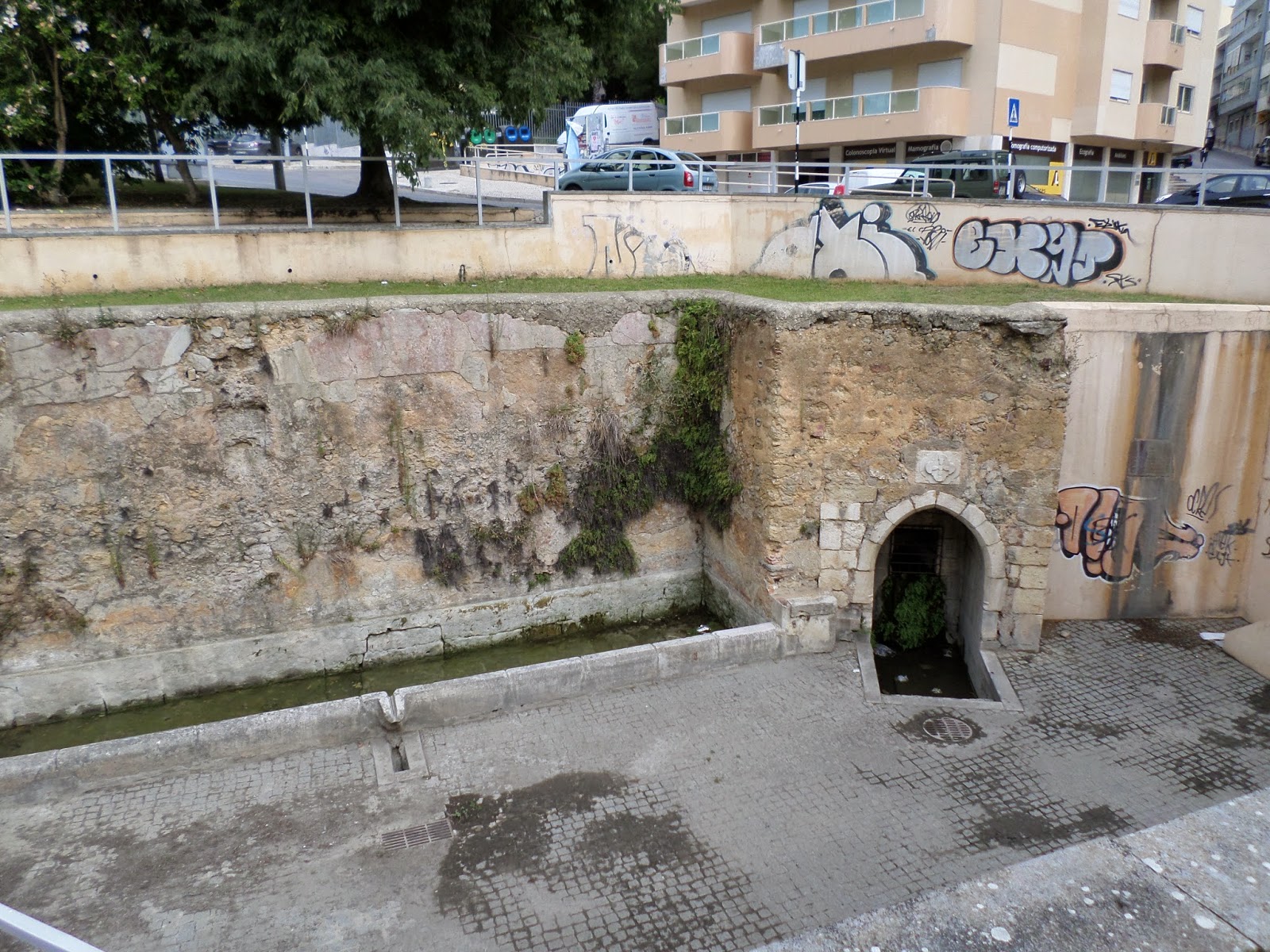 Hoje só existe apenas a mina de água e o tanque para os animais beberem a um nível muito inferior da estrada