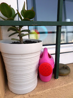 Cato "roubado" da minha irmã, a Mena, guardião da janela da casa de banho ao lado do regador do Vicente