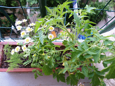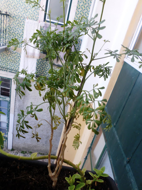 O Vicente e a Laura gostam de arrebatar de mão fechada os raminhos e depois cheirar, como a avó Isa lhes ensina.Cheira a Ansião, na primavera o cheiro da erva de Santa Maria emana pelos costados das serras que nos entra pela alma e fortalece o corpo.Tomateiro nasceu na escadaria da Cidade de Liverpool